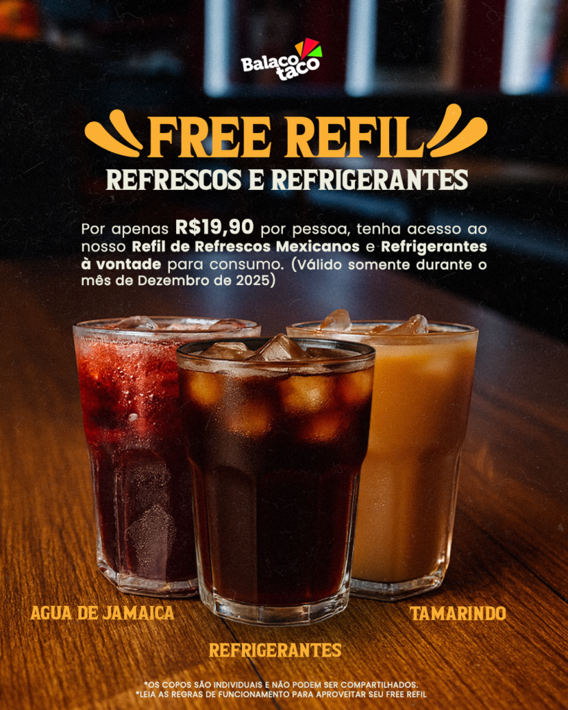 FREE REFIL de Refrescos Mexicanos e Refrigerantes no Balacotaco!
